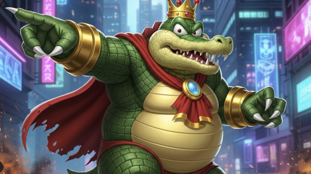 彼は王冠と赤いマントを身につけた非常に大柄なワニで、常に血走った左目と金色に輝くお腹が特徴的な、一度見たら忘れられない強烈なインパクトを持っています。