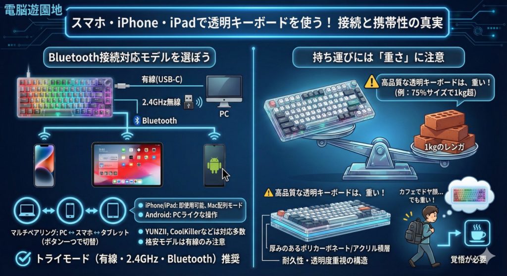 スマホ・iPhone・iPadで透明キーボードを使う!接続と携帯性の真実