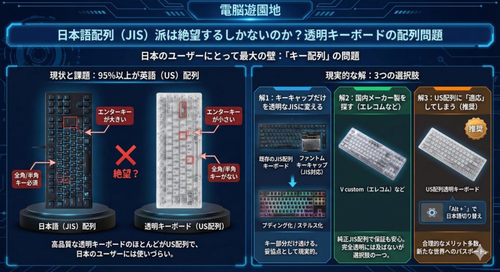 日本語配列(JIS)派は絶望するしかないのか?透明キーボードの配列問題