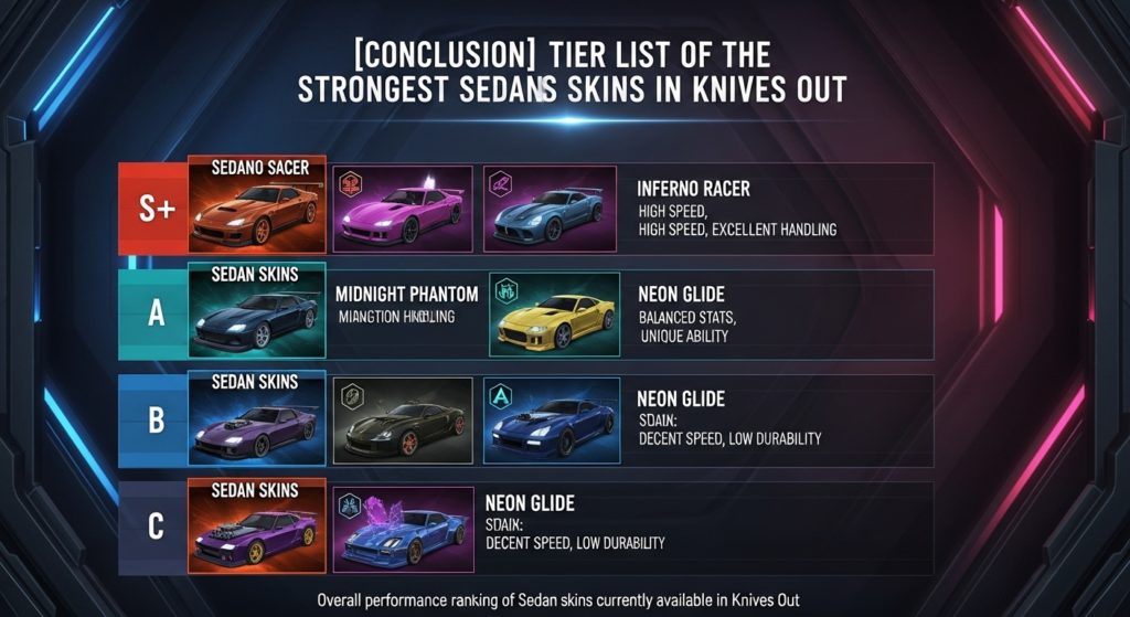 2025年最新のデータを基に、最強のセダンスキンをTier形式のランキングで徹底解説。