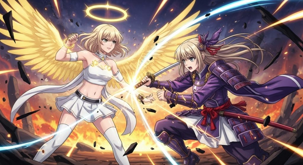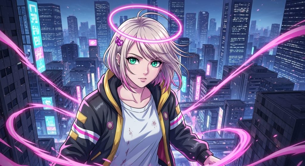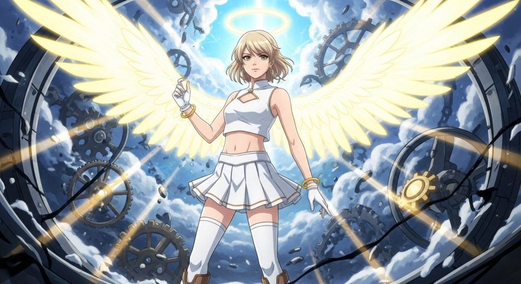普段は普通の少女として生活していますが、使命を果たす際には堕天使の力と記憶を解放して戦う、という設定です。