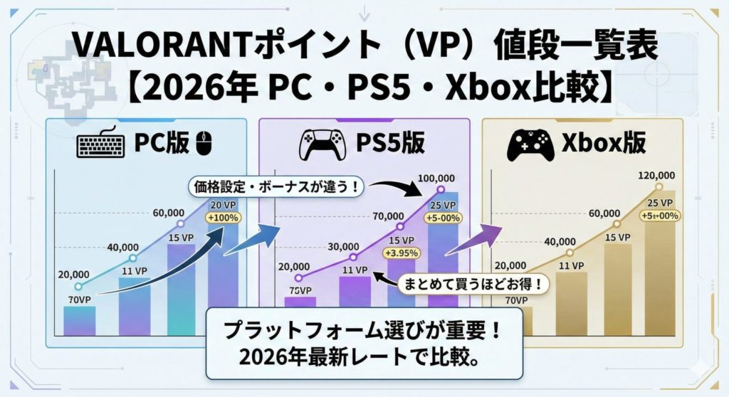 VALORANTポイント(VP)値段一覧表【2026年 PC・PS5・Xbox比較】